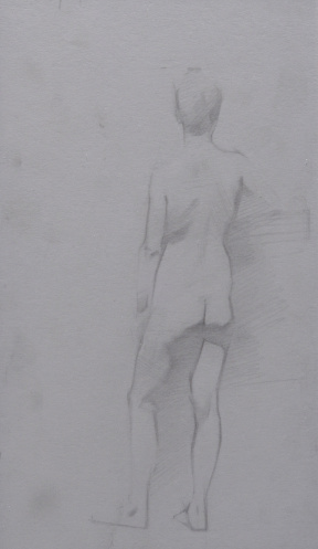 Intermediate program, Figure drawing, Charcoal and white chalk on toned paper, 75 x 33 cm