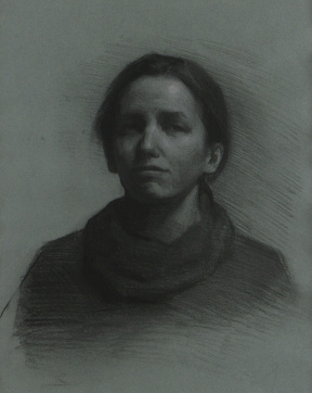 Intermediate Program program, Portrait drawing, Charcoal and white chalk on toned paper, 61 x 46 cm, 2017